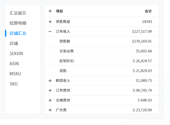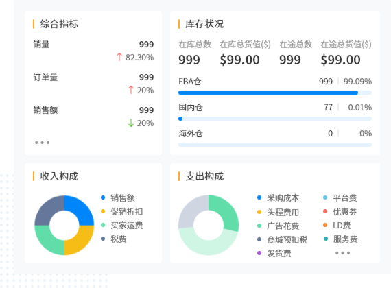 按店铺、ASIN、业务员等多种维度实时精确计算利润和业绩