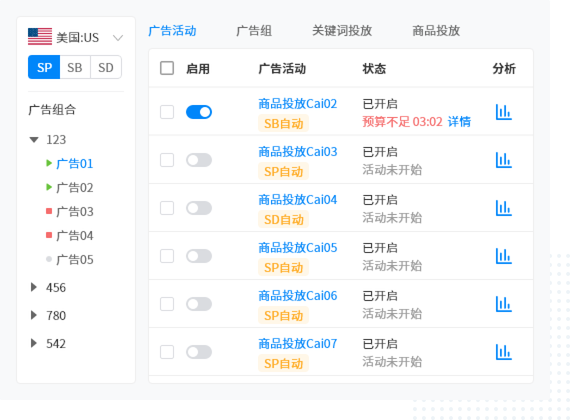 可批量管理SP、SB、SD等广告类型